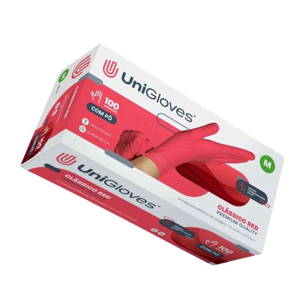 Luva de Látex Vermelha com Pó Unigloves – Procedimento Não Cirúrgico Caixa com 100 Unidades